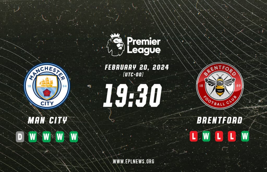 Depois de um empate em 1 a 1 com o Chelsea, que interrompeu momentaneamente a busca pelo título, o City agora recebe o Brentford, um time com uma rara vitória no Etihad na temporada passada.