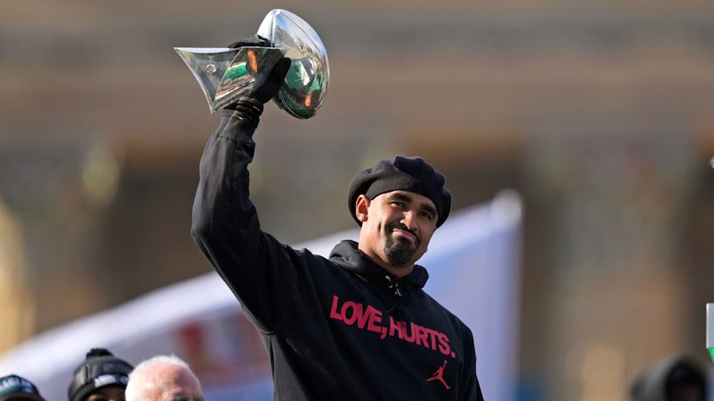 Nos famosos degraus do Museu de Arte da Filadélfia na tarde de sexta -feira, o desfile do Eagles no Super Bowl Lx chegou à sua conclusão depois de andar de ônibus pela cidade de Love Fraternal.