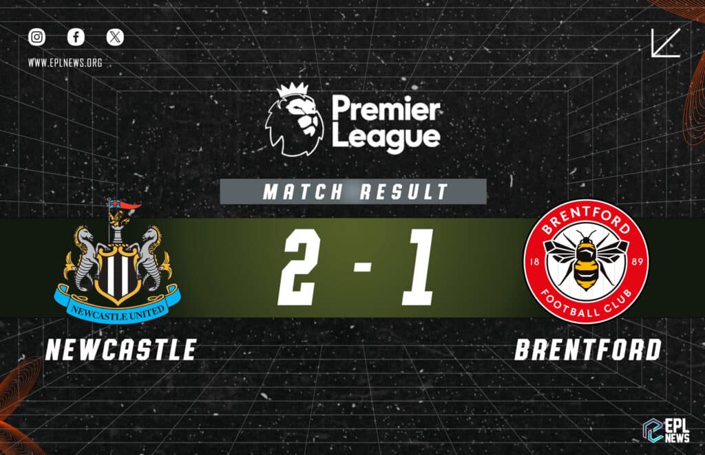 Scorers: ISAK 45+2 ‘, Tonali 74’; Mbeumo 66 ‘(p)