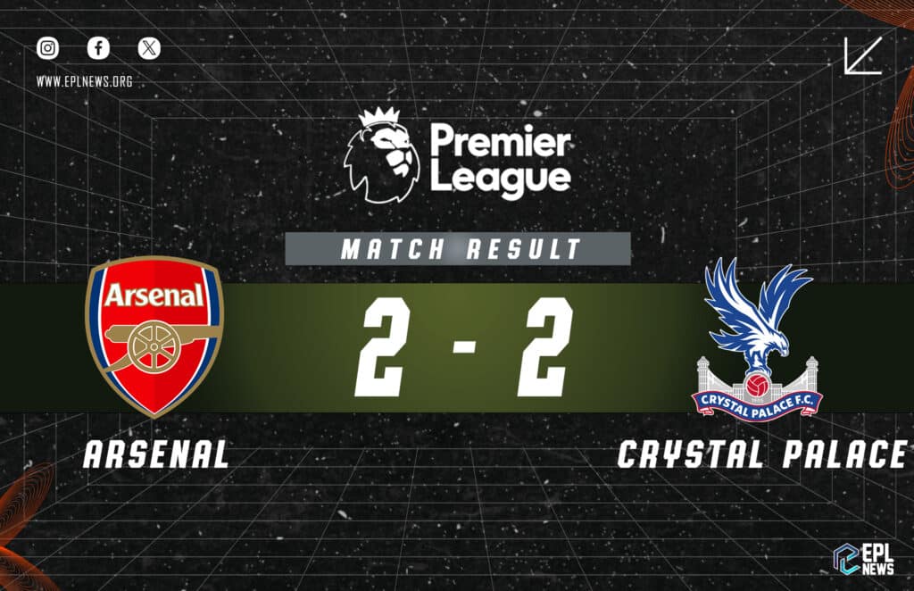 Apenas quando parecia que os Gunners aguentariam os três pontos, o desastre ocorreu. William Saliba foi roubado de posse por Jean-Philippe Mateta, que desencadeou um requintado lob de 35 jardas sobre Raya que beijou a parte inferior do bar a caminho da rede. Foi um momento de brilho individual que recuperou um ponto para os visitantes.