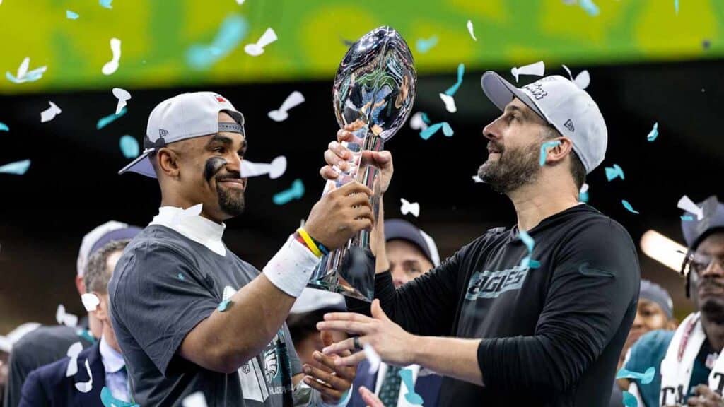 Grande parte da corrida dos Eagles até o triunfo do lixo do Super Bowl estava focada Saquon BarkleyA temporada de 2.000 jardas e a defesa enxameada da Filadélfia.