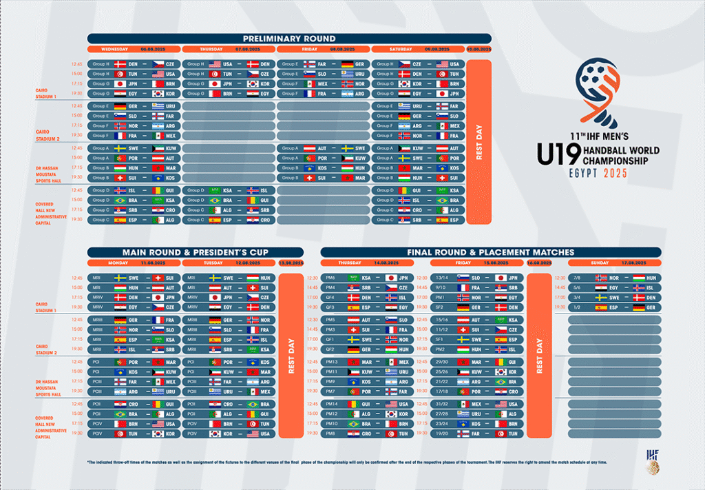 A Federação Internacional de Handall (IHF) divulgou oficialmente o cronograma para o último dia do Campeonato Mundial da Juventude da IHF de 2025.