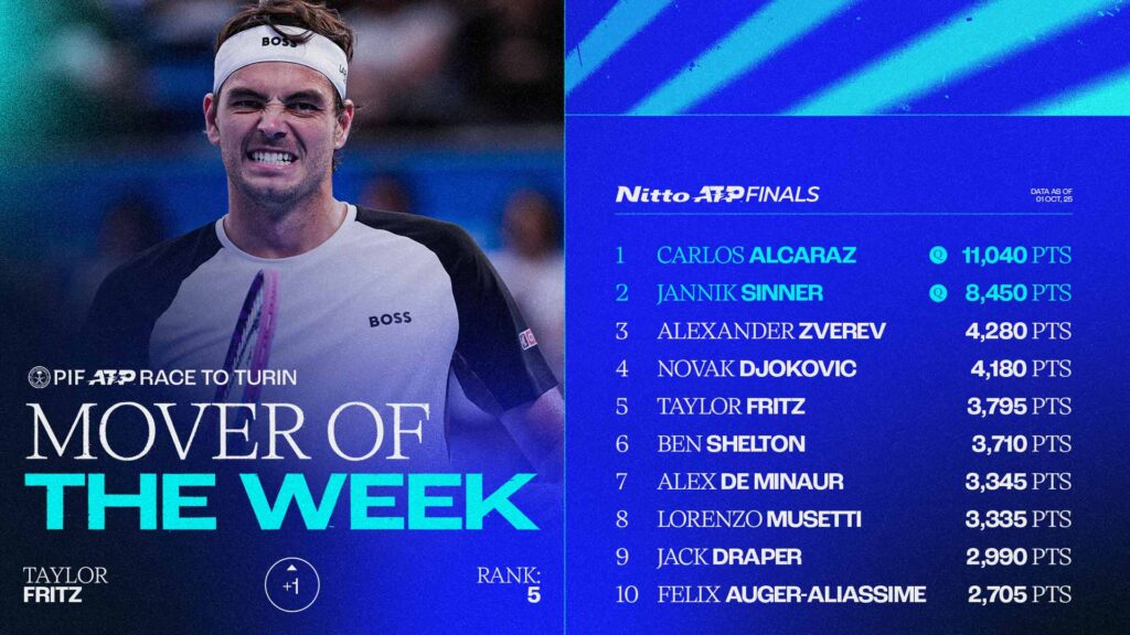 Motores da semana ATP Staff Fritz se aproxima de Turim seguindo a final de Tóquio