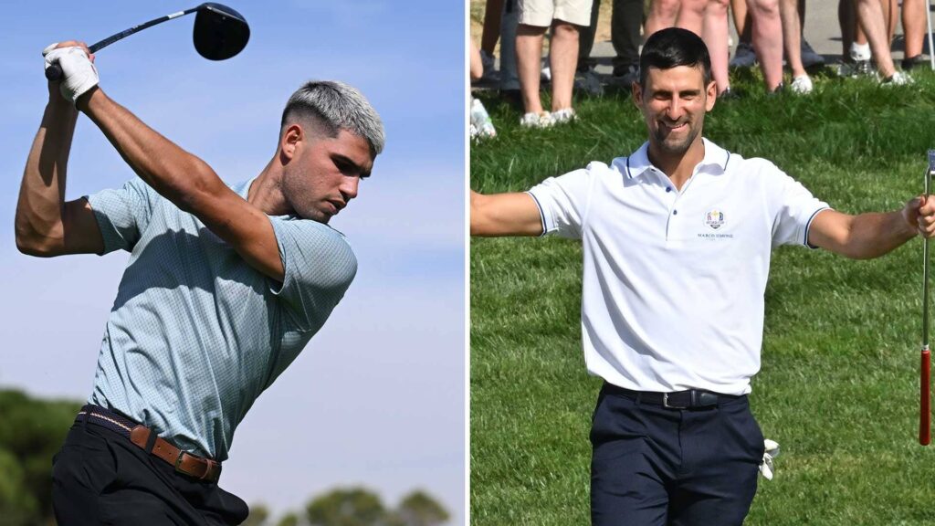 “Estou bem”, disse Djokovic com um sorriso. “Estou atrás desses caras. Não jogo tanto quanto antes e a prática leva à perfeição. Essa é a minha desculpa. Os caras são muito bons. Eu apareço e no primeiro buraco, o cara (Alcaraz) faz um drive de 300 jardas, par 5, indo para uma águia. E eu fico tipo ‘Existe alguma coisa em que você não é bom, cara, o que está acontecendo aqui’. Apenas força bruta.”